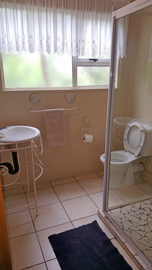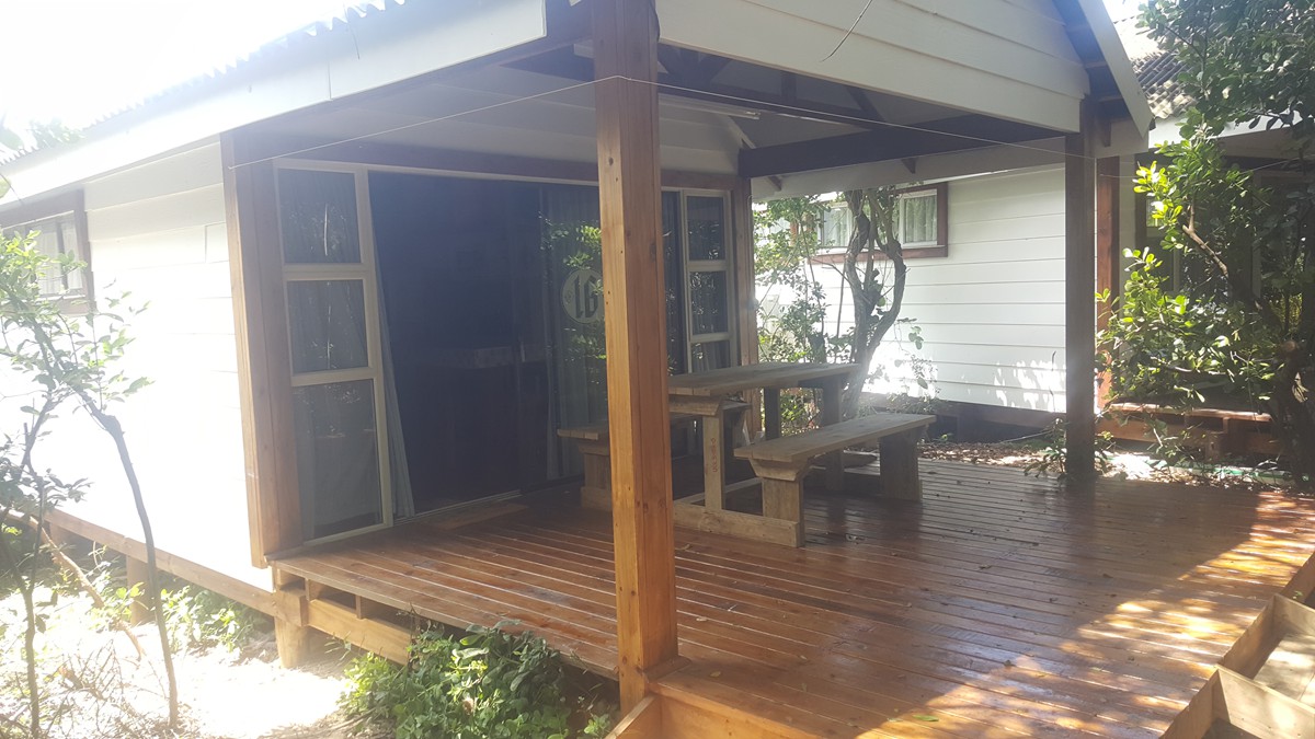 2 sleeper en-suite with Double bed. Uses communal kitchen and dinning room, ceiling fan, fridge/freezer, kettle, mugs & glasses. Covered deck with table and 2 chairs. Single beds by arrangement