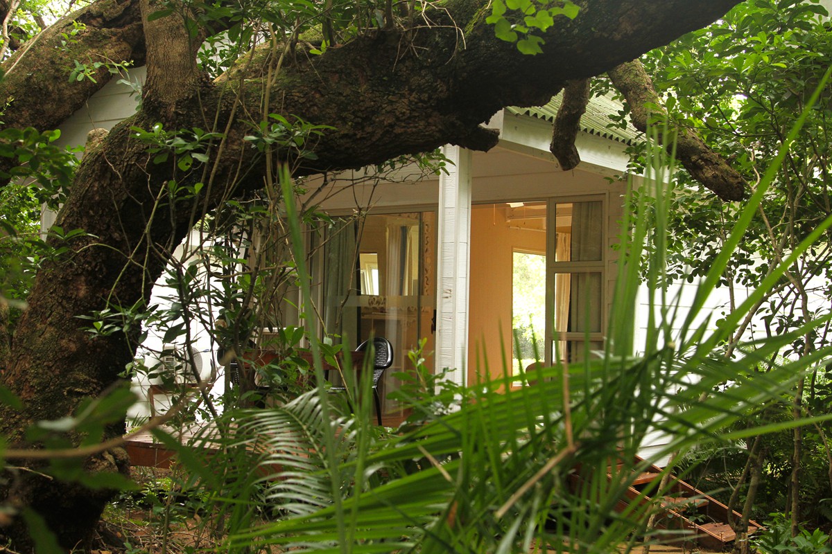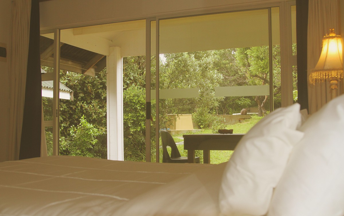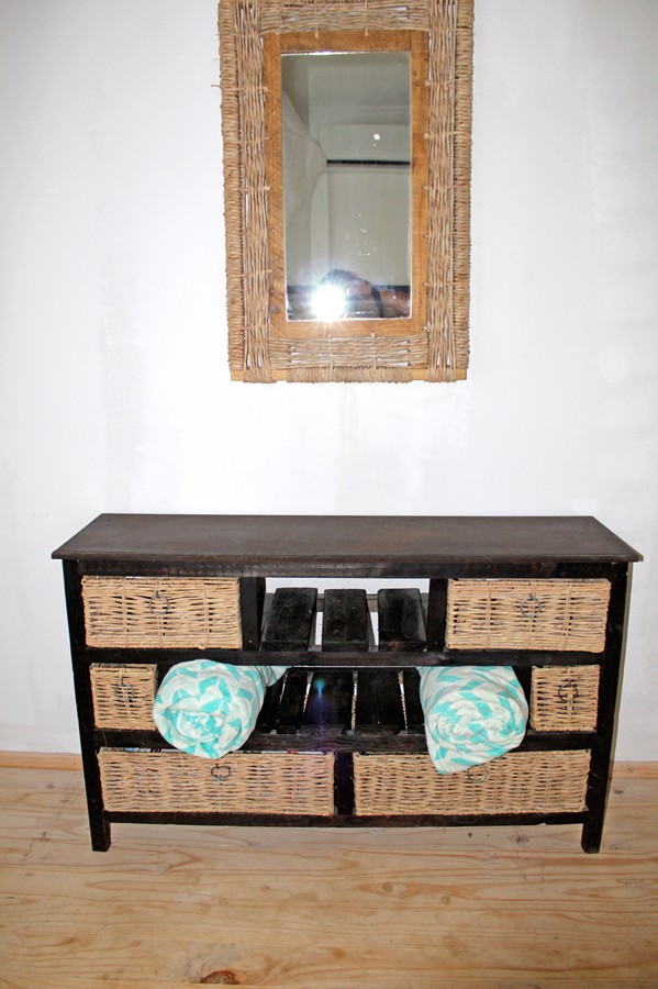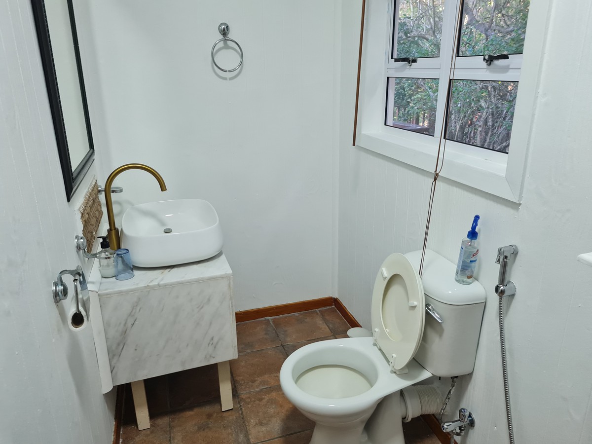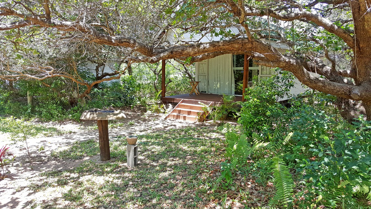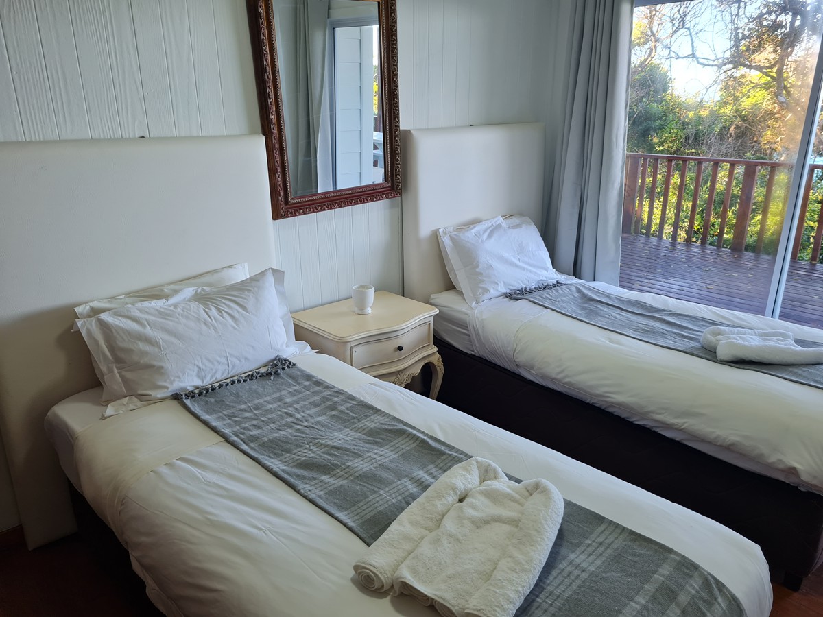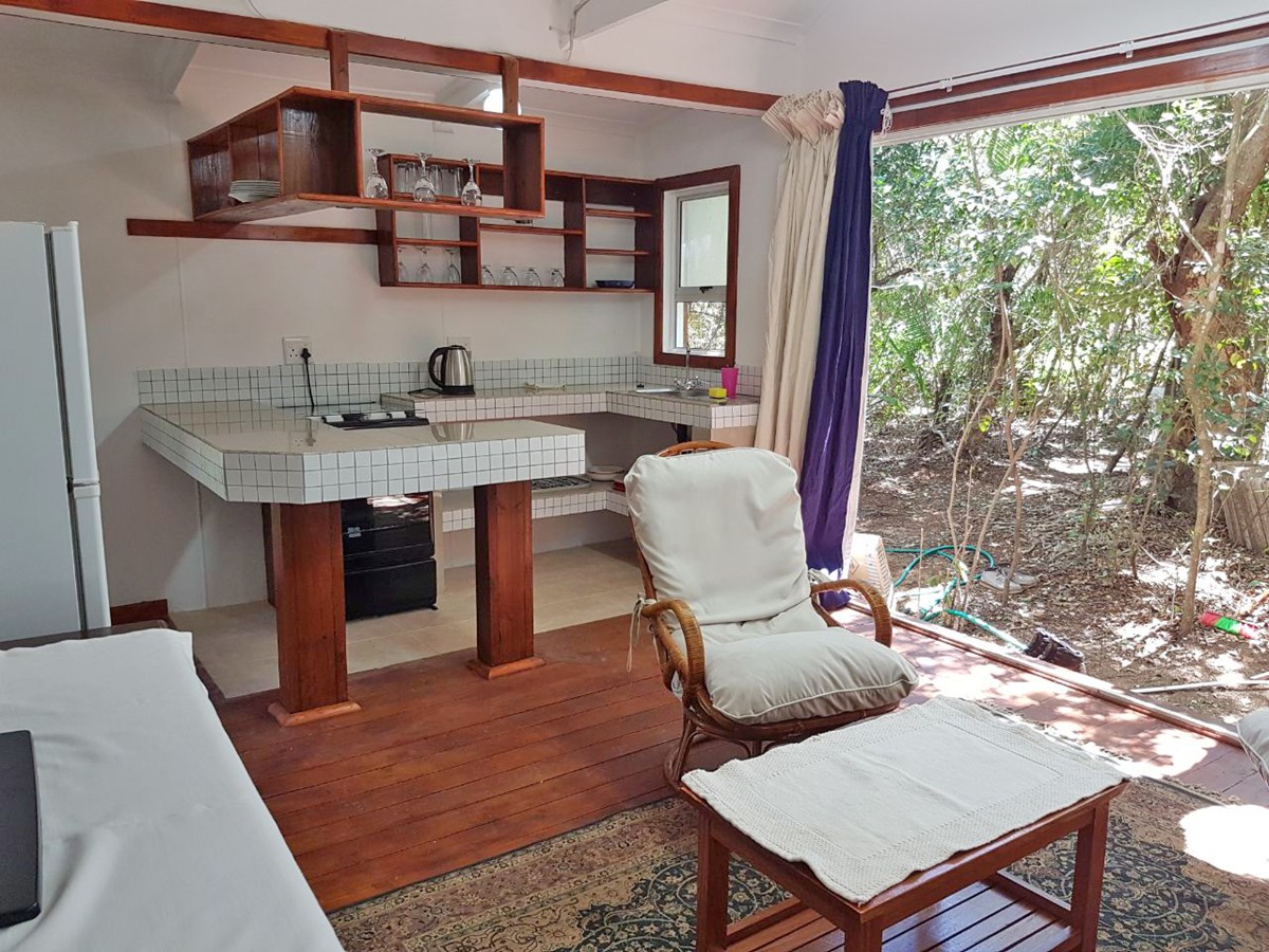 1 room en-suite with Aircon, 1 double & 2 single beds. Private kitchenette with Fridge/freezer, microwave, kettle, toaster, gas 2 plate, cutlery & crockery, pots & pan. Private braai. Covered deck with picnic table (Not suitable for 2 couples). No TV.