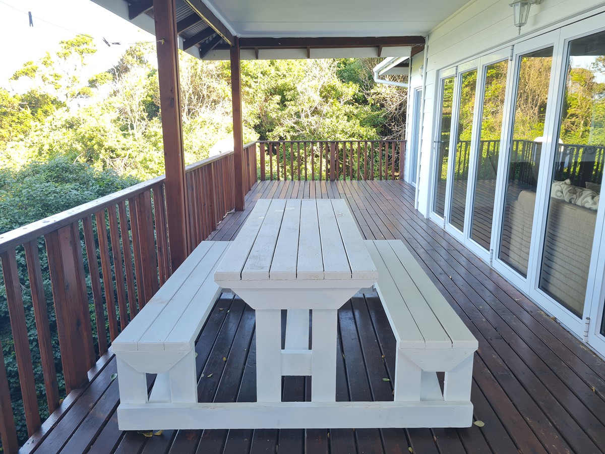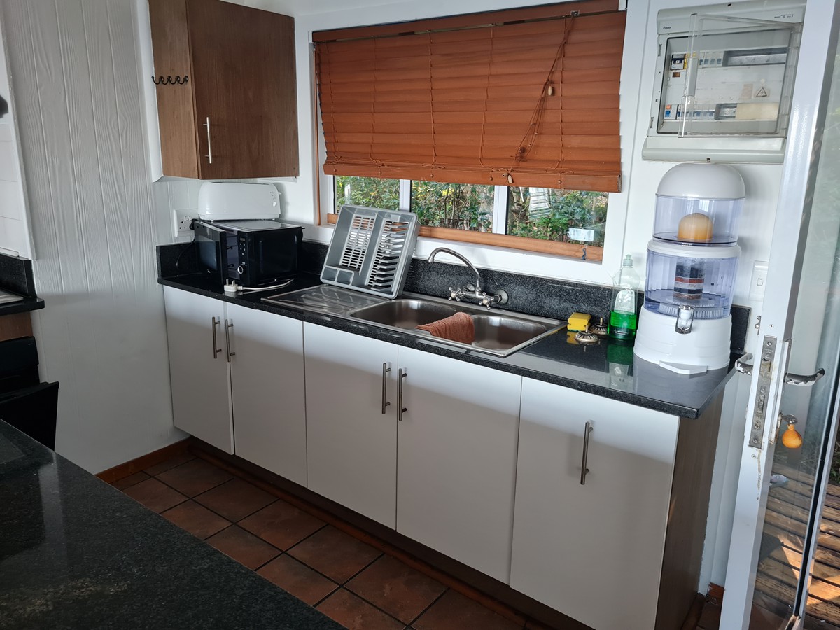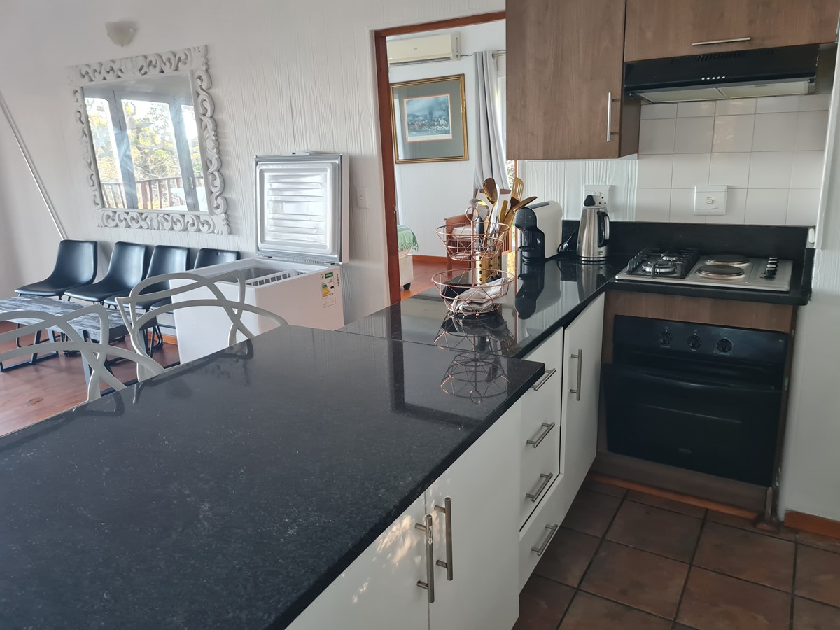 2 en-suite rooms + aircon. Private kitchen with fridge/freezer, micro, kettle, toaster, gas stove elec oven, cutlery & crockery, pots & pan. Private braai. Covered deck with table and benches. TV with dish and open view decoder.